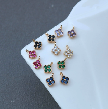 カスタムDIYラグジュアリー14kゴールド銅CZダイヤモンドクローバーアクセサリーミニ7*10mm梅花ギフト用ペンダント
